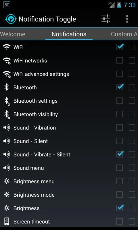 : Turn, Bluetooth, Flashlight bar!Notification Toggle creates notifications Android status bar switch WiFi, Bluetooth, Silent mode, Screen rotation mode off adjust brigthness ( more...)